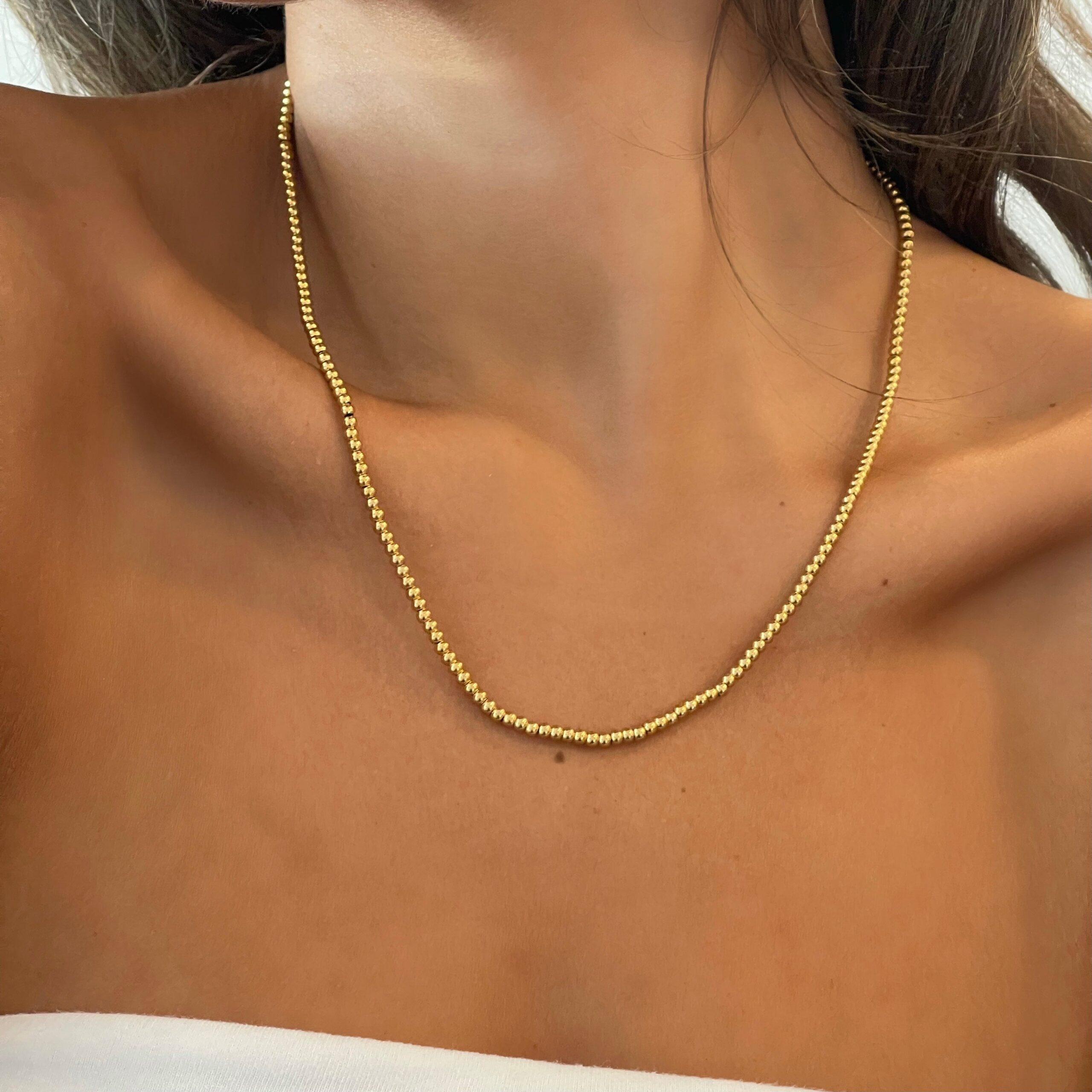 Gold-plated jewelry features a layer of gold over a base metal, providing an attractive finish similar to real gold. We use gold plating over stainless steel to ensure durability, as stainless steel resists scratches and corrosion, making our jewelry tarnish-resistant.