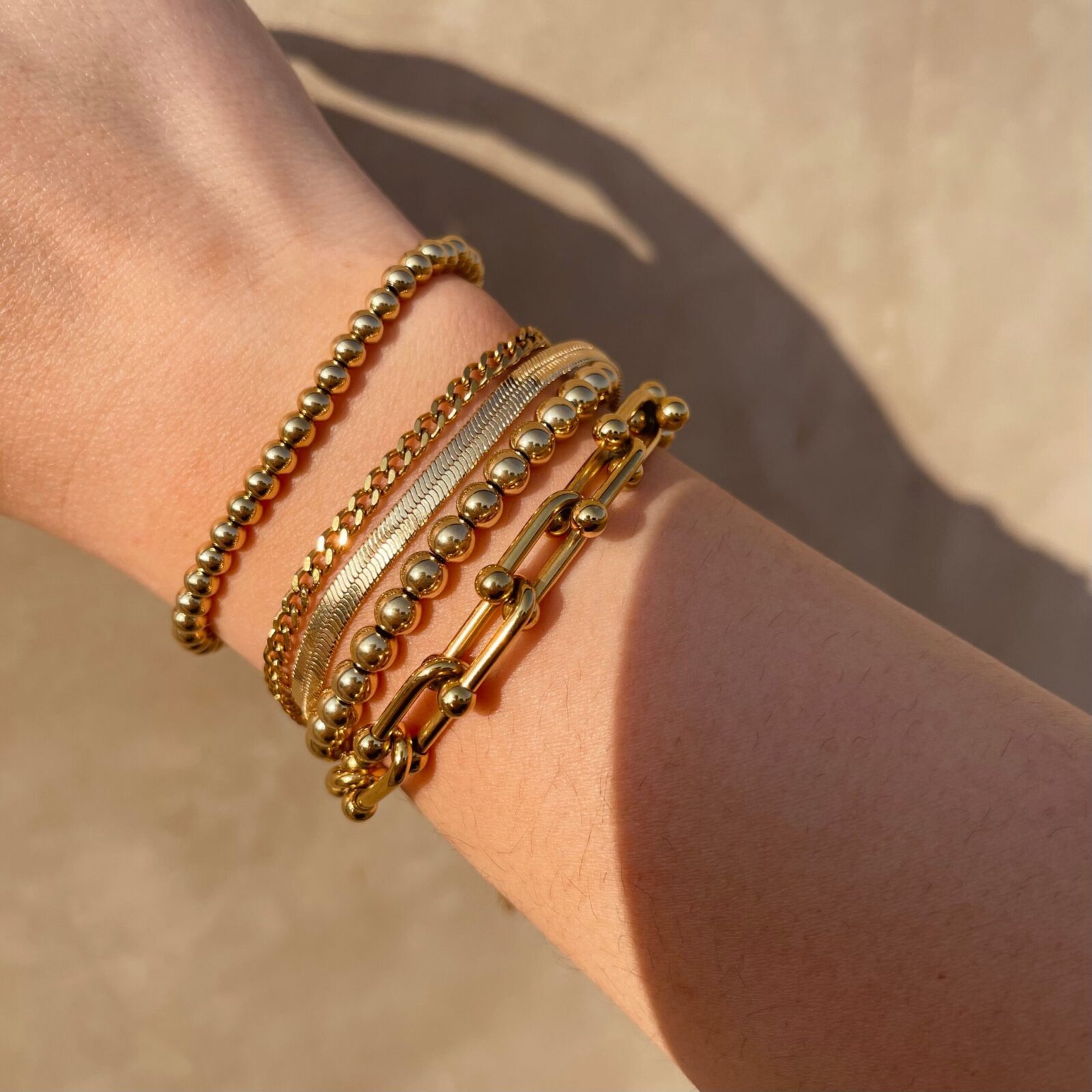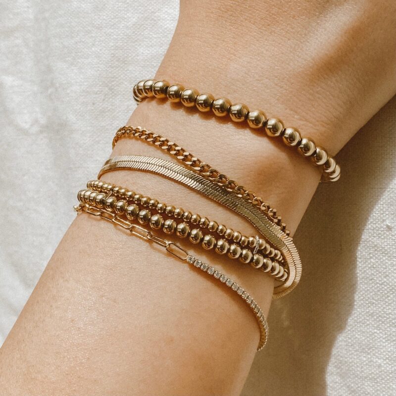 Gold-plated jewelry features a layer of gold over a base metal, providing an attractive finish similar to real gold. We use gold plating over stainless steel to ensure durability, as stainless steel resists scratches and corrosion, making our jewelry tarnish-resistant.