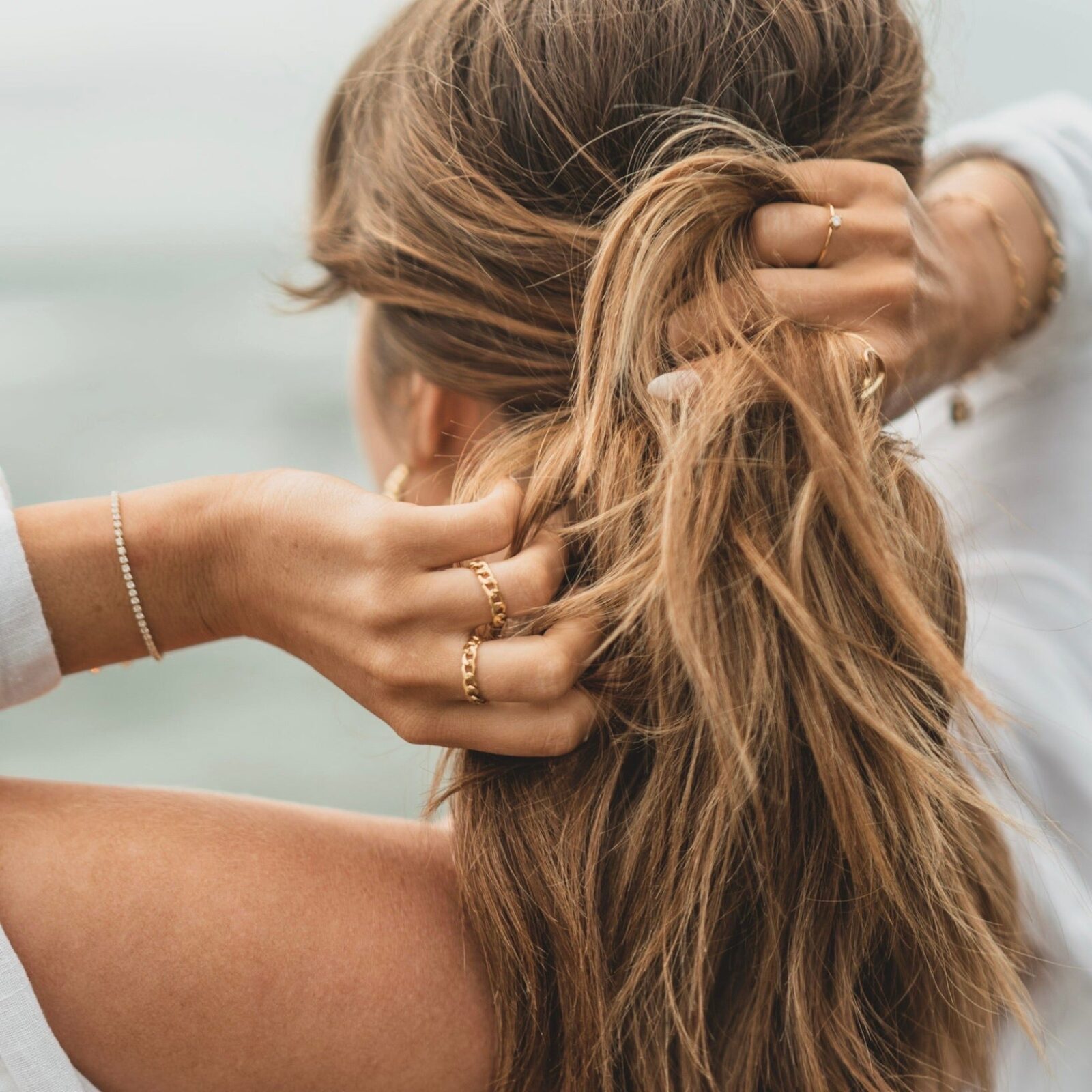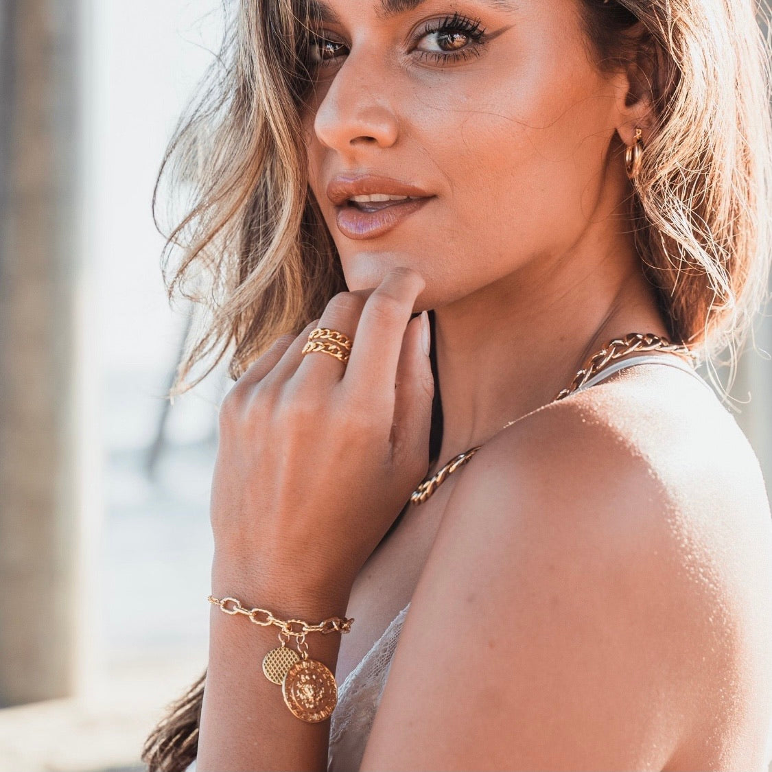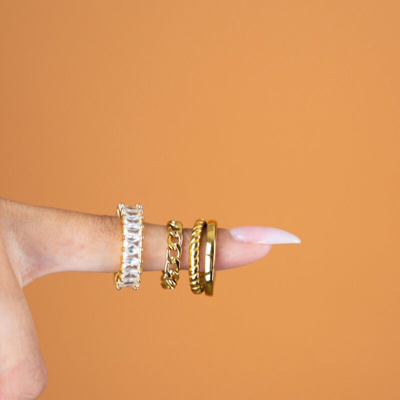 Gold-plated jewelry features a layer of gold over a base metal, providing an attractive finish similar to real gold. We use gold plating over stainless steel to ensure durability, as stainless steel resists scratches and corrosion, making our jewelry tarnish-resistant.