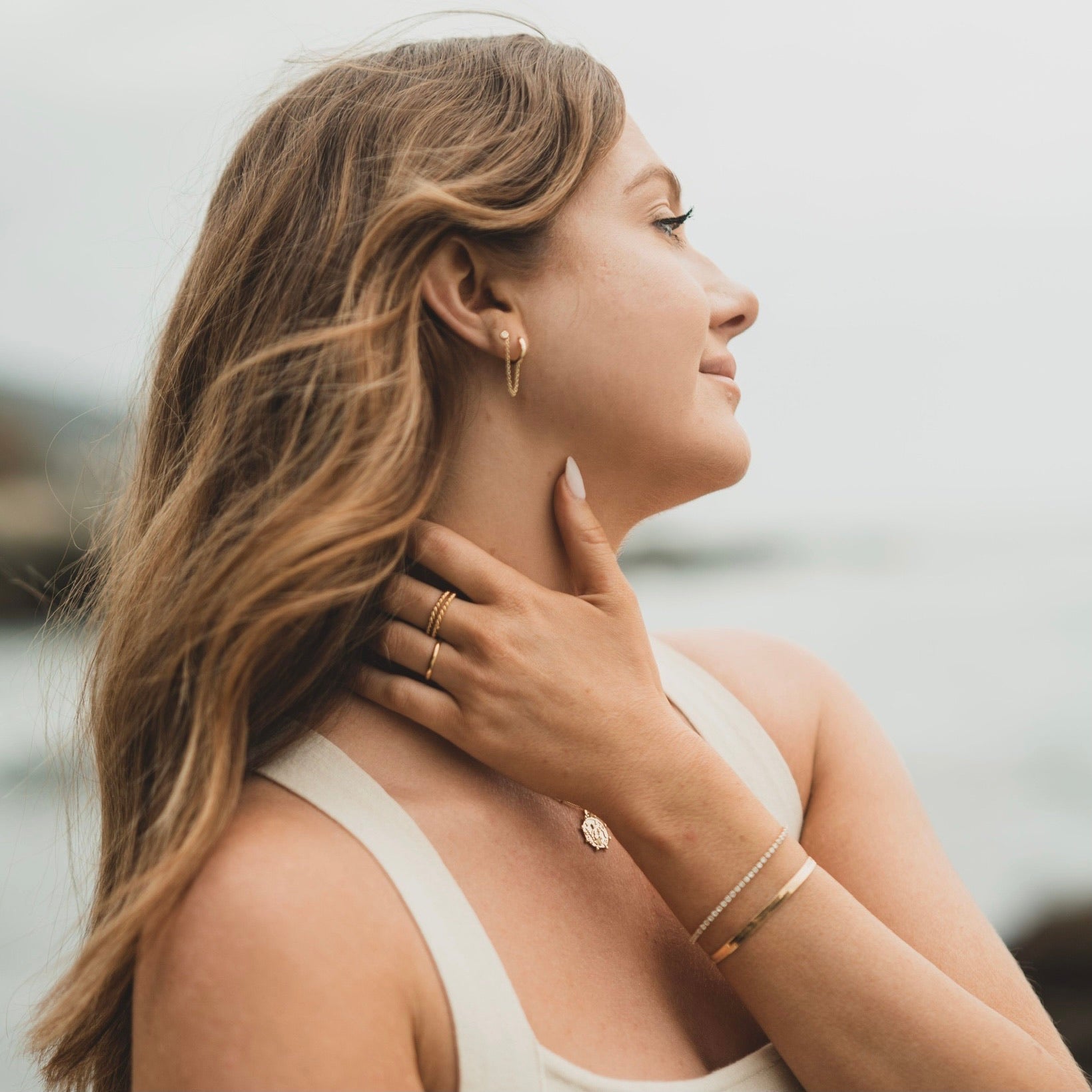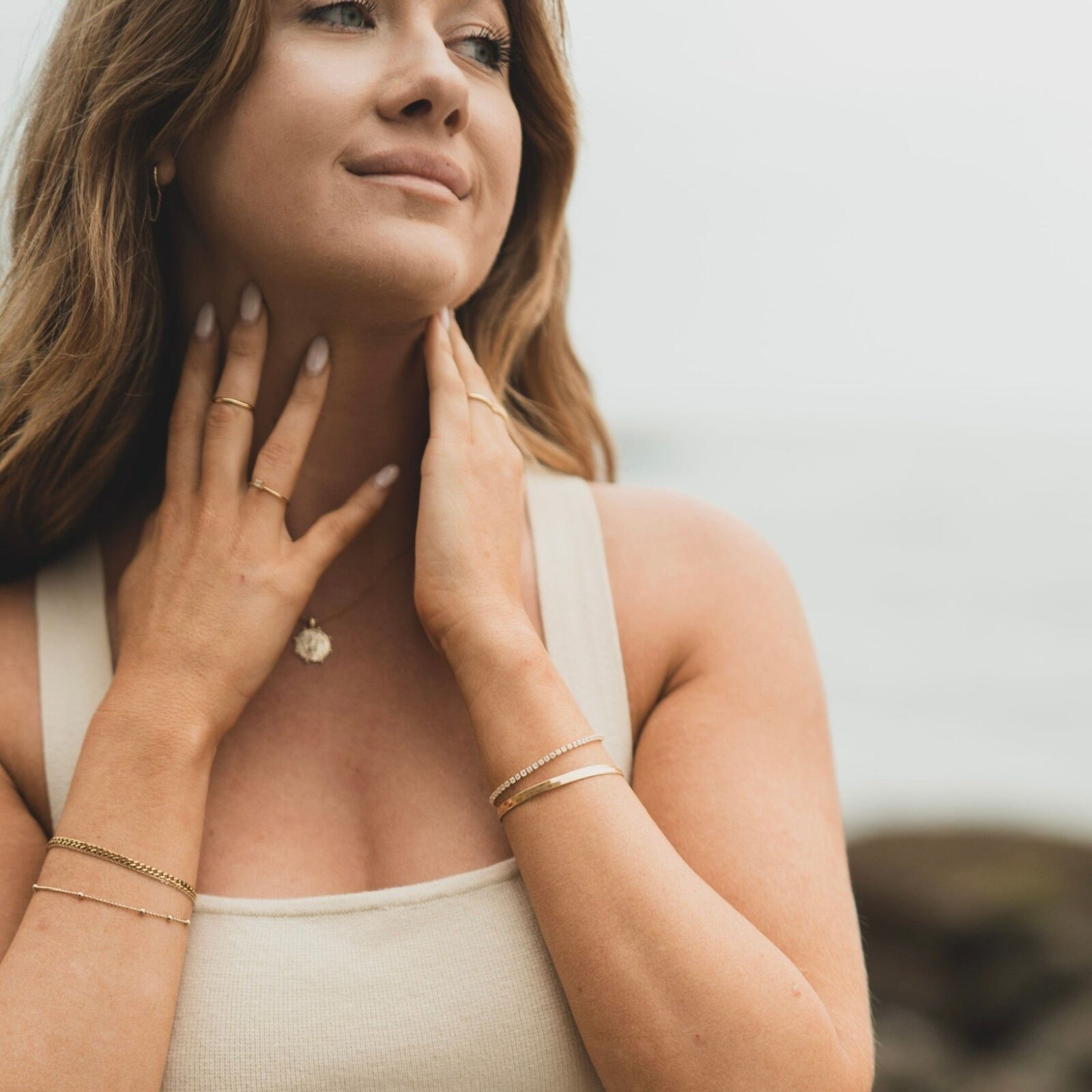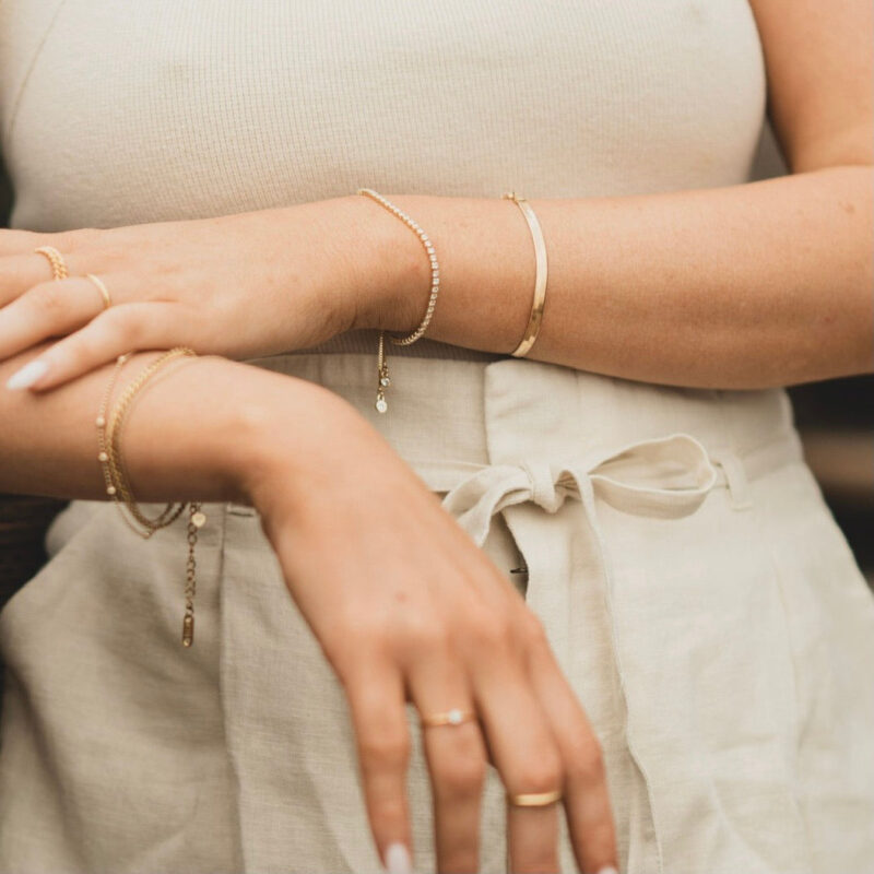 Gold-plated jewelry features a layer of gold over a base metal, providing an attractive finish similar to real gold. We use gold plating over stainless steel to ensure durability, as stainless steel resists scratches and corrosion, making our jewelry tarnish-resistant.