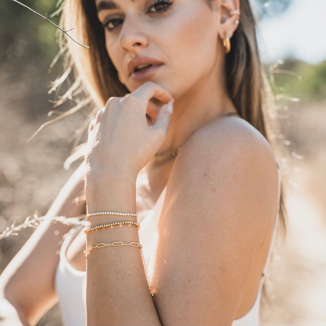 Gold-plated jewelry features a layer of gold over a base metal, providing an attractive finish similar to real gold. We use gold plating over stainless steel to ensure durability, as stainless steel resists scratches and corrosion, making our jewelry tarnish-resistant.