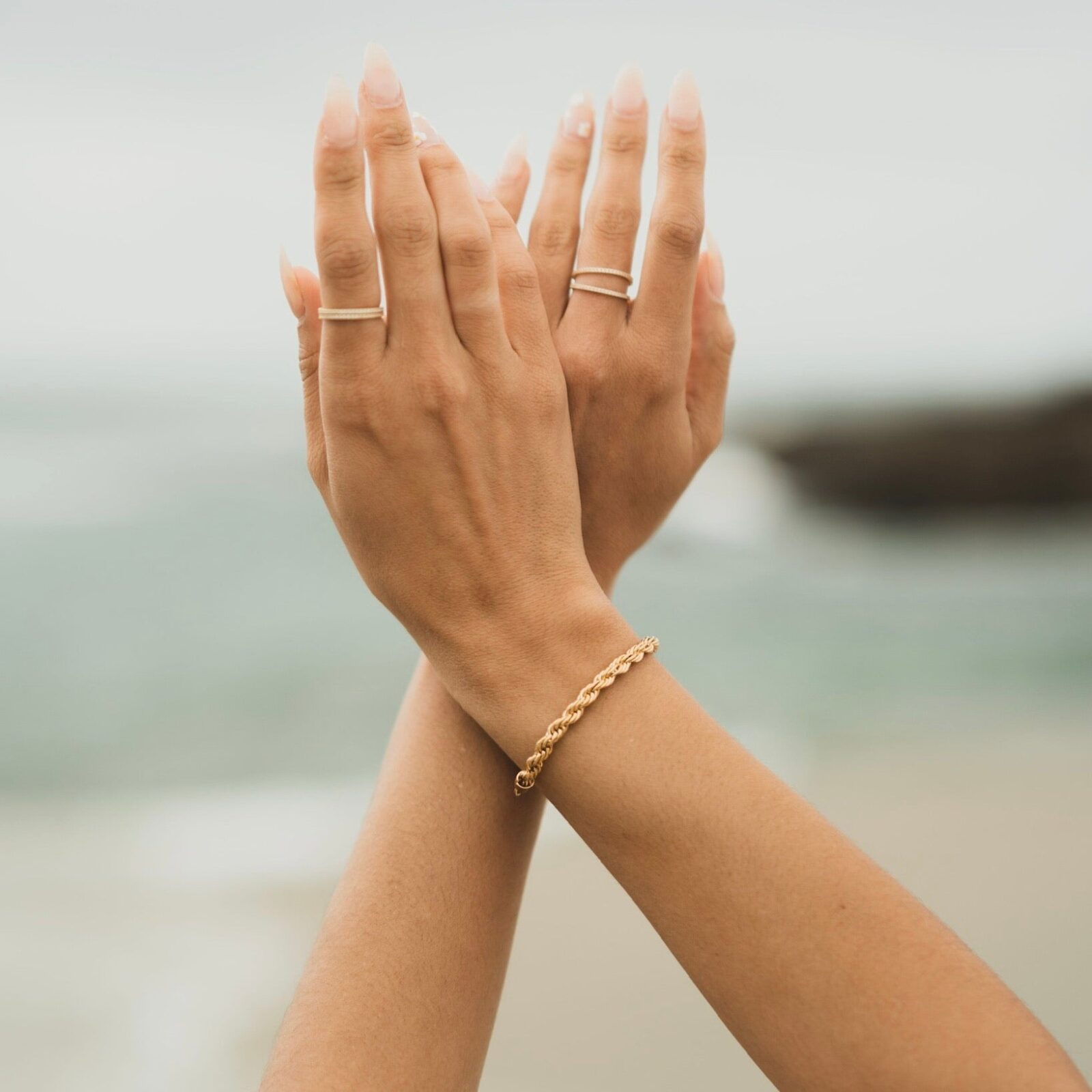 Gold-filled jewelry adheres to the USA industry standard, which requires at least 1/20th (5%) of the item’s weight to be pure gold. This process involves bonding multiple layers of solid 14k gold to a core of high-quality jeweler’s brass using extreme heat, resulting in a durable, high-quality gold product.